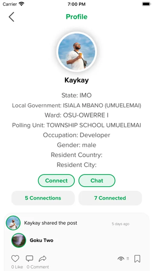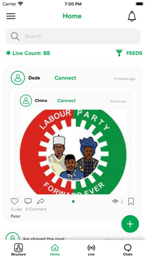 5. General home feeds allow general users on the application to share entertainment, politic, news, events post, comments, chat, react, connect and access connected members on the application