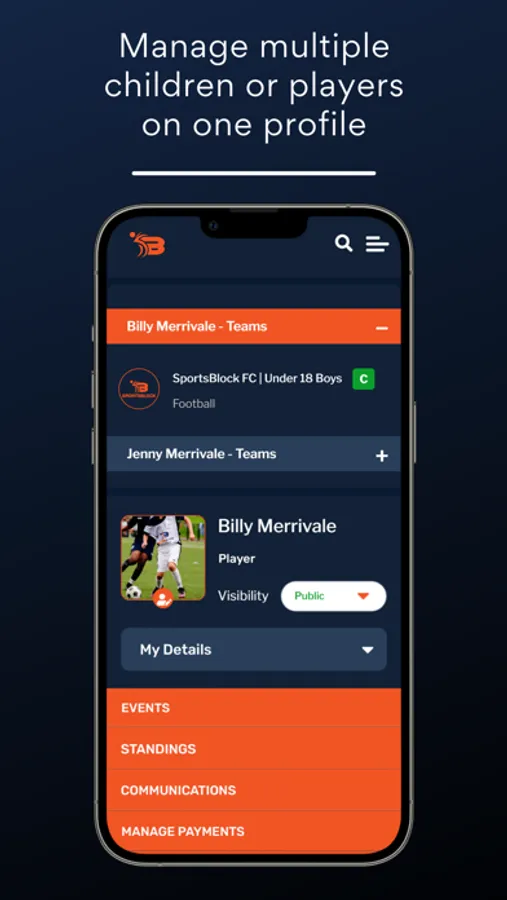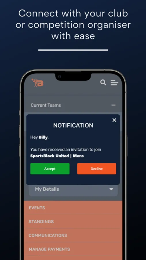 SportsBlock looks beyond just the team and it’s members - we look at the whole organisation and how we can build highly automated, modern solutions to sports administration. Our app provides users with:
