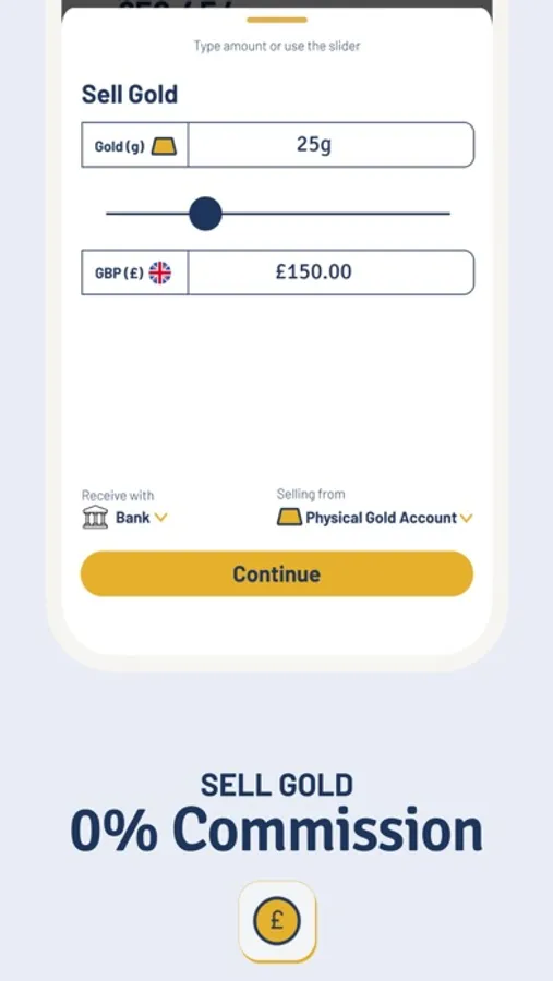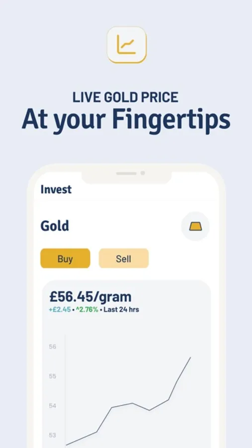 ● Purchase gold with complete autonomy and freedom, either as a 50g LBMA-approved bar delivered physically or as digital storage, and sell gold anytime, anywhere immediately from your phone for as little as £1.