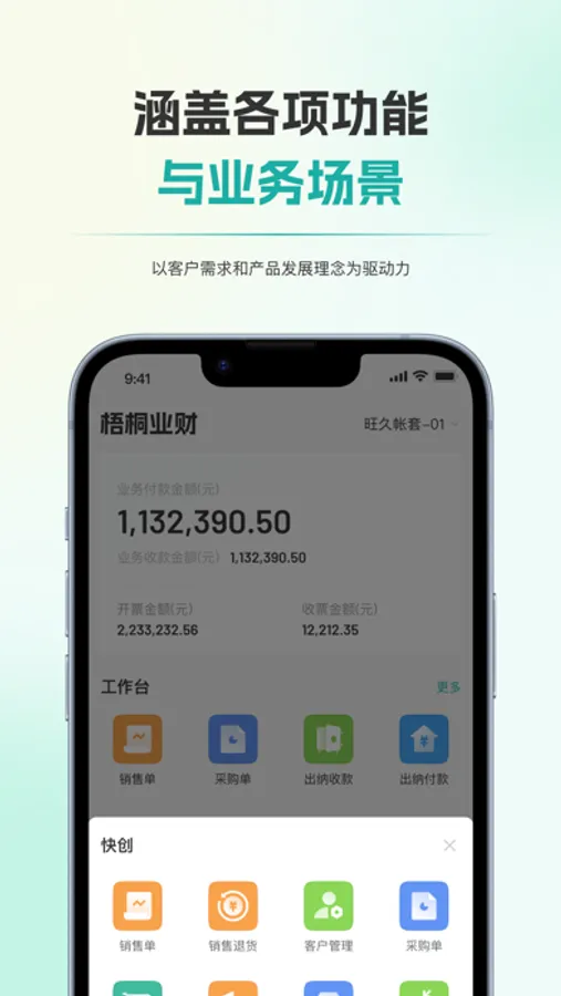 从业务端出发管理账务,业财融合的设计实现数据实时、精准、清楚。