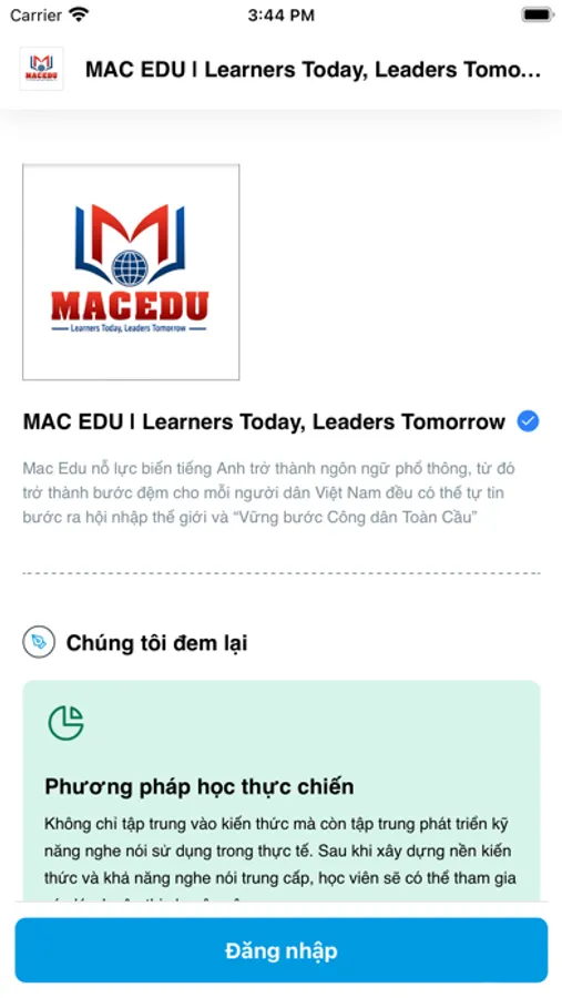 Ứng dụng MAC EDU giúp học viên có thể truy cập vào lớp học một cách thuận tiện; tương trao đổi với thầy cô và các học viên khác sau buổi học; theo dõi quá trình học và làm đánh giá trình độ định kỳ; nhận thông báo để không bỏ lỡ bài học nào. Ứng dụng hoàn toàn không có quảng cáo giúp học viên học tập được thuận tiện.