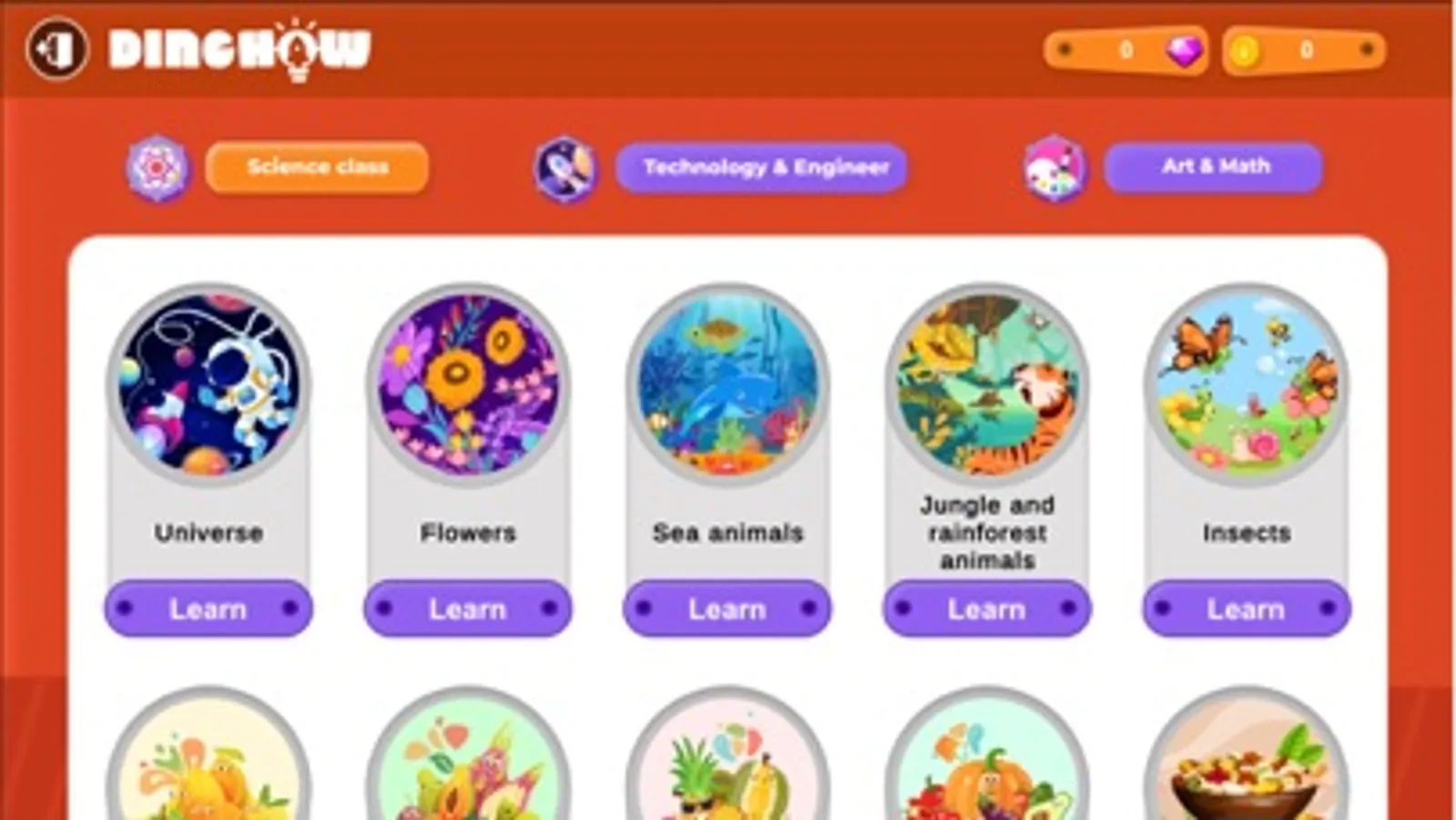 Hệ thống bài học trong DinoHow cung cấp 1.000 bài học với 1.000 hoạt động học thuộc 05 môn Tiếng Anh, Tiếng Việt, Toán, Kỹ năng Xã hội và Thể chất. Với sự tích hợp của phương pháp học tập kết hợp trò chơi (game-based learning) cùng kho nội dung tương tác đặc sắc từ truyện tranh, bài hát, thơ/ca, câu đố..., trải nghiệm học sẽ tràn đầy những hoạt động lôi cuốn, sáng tạo và bất ngờ. Mỗi ngày, người học được khám phá những thử thách mới, kích thích trí tò mò, sáng tạo, nhờ đó lĩnh hội kiến thức học tập dễ dàng và đầy hào hứng.