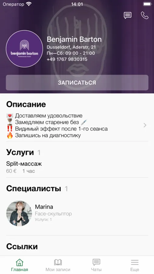 Официальное мобильное приложение студии фейс-массажа BENJAMIN BARTON (Германия)