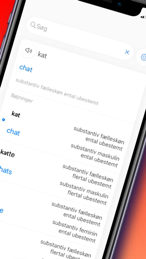 Du kan slå bøjede former direkte op uden at kende grundformen på et ord.