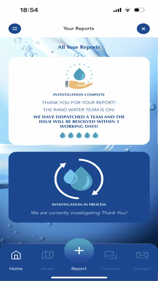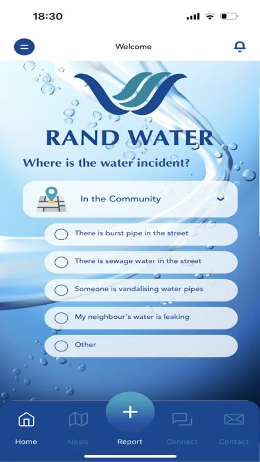 The App allows you to report water leaks, burst pipes as well as encroachments which refers to vandalism of any kind of water infrastructure such as water boxes and pipeline.