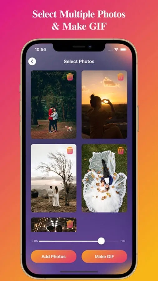 Users can set GIF duration using slider. So users can make faster and slower GIF.