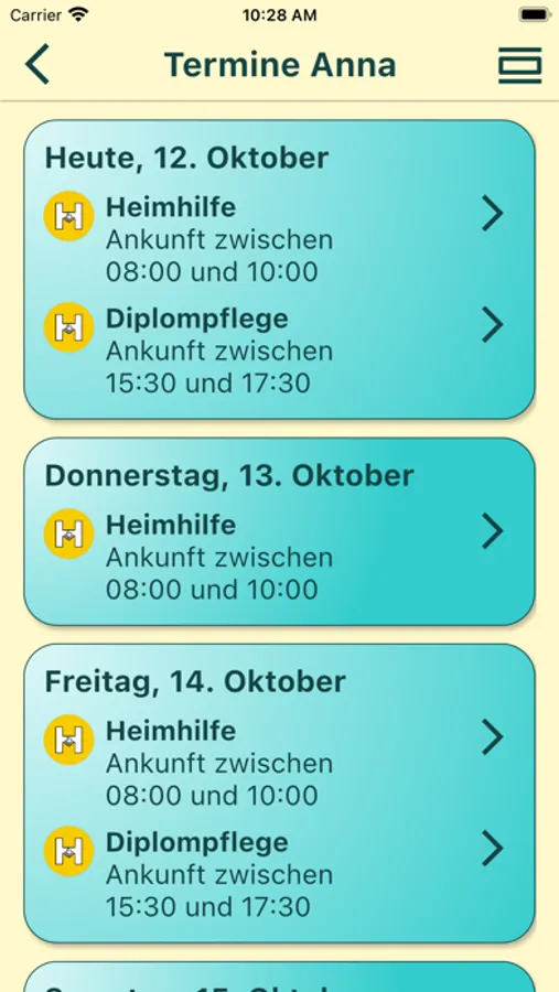 • eine Übersicht der bevorstehenden und geplanten Pflegetermine