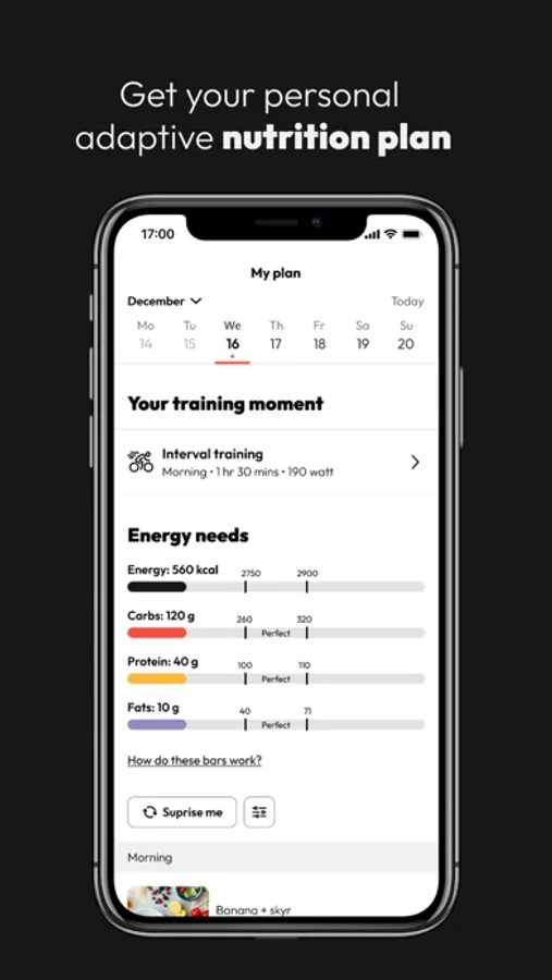 Get a personal performance nutrition plan based on your data in The Athlete’s FoodCoach app. This will help you take the next step in sports performance. We will help you on training and rest days.