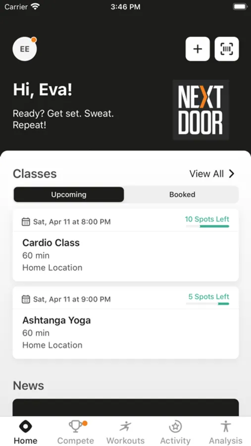 The NEXT DOOR TRAIN app uses HealthKit to save your workouts, so they can contribute to your fitness goals and challenges progress.