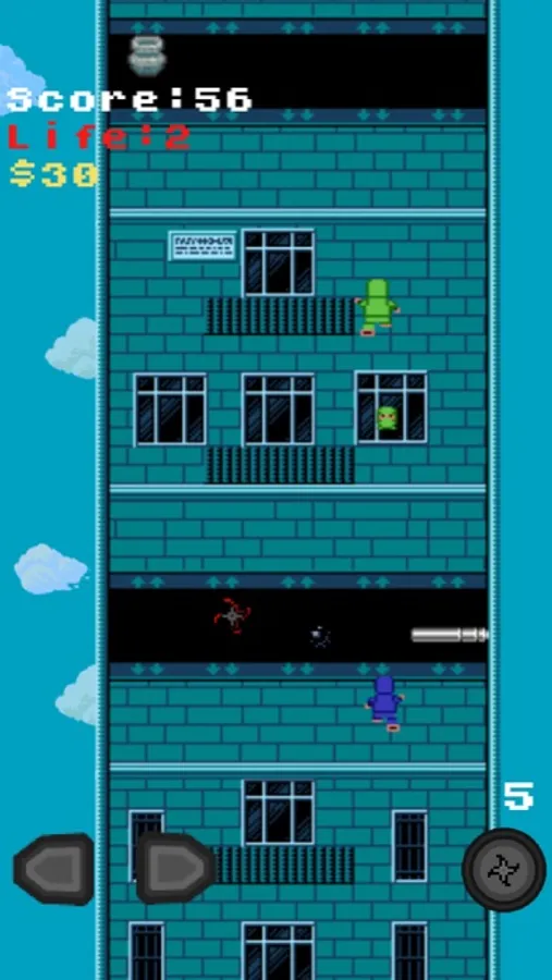 an old school NES style endless climbing game. The game features retro music, graphics, and audio to imitate other games of the early 80s and 90s era. Throw stars at enemies and dodge obstacles as you climb up the building tower. Unlock characters and upgrade your items using in-game money.