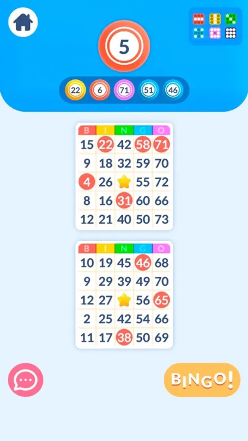 Watch your Bingo lottery number cards and pay attention to the number balls as they come up in the tombola draw. Chance is key in free Bingo at home, but you have to be quick and keep your mind focused on the tombola. Mark the numbers drawn in the lottery and sing Bingo to win.