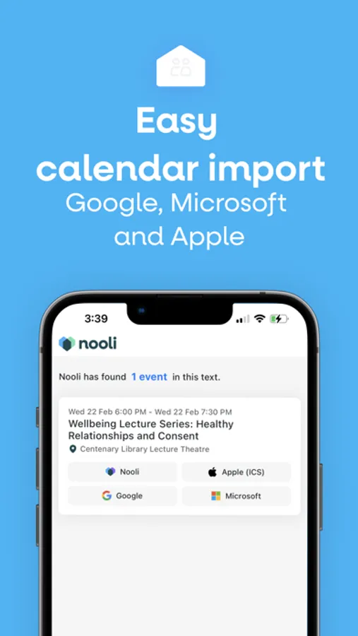 Tame the high volume of information that arrives into your household every single day. Nooli automatically generates calendar events from any text copy-pasted from web sites, PDF files or emails. You can also send screenshots to Nooli and we'll automatically detect any calendar events. All found events can then be simply added to your Google, Microsoft and Apple calendars.