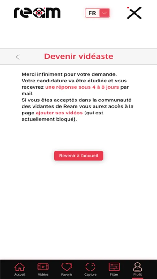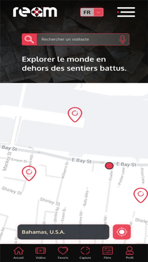 1 - Commence par sélectionner une vidéo que Ream met à ta disposition. Profite du travail d’experts en vidéo pour magnifier tes souvenirs de voyages, tes aventures, tes vacances sans avoir à te soucier de la qualité des vidéos. Ex : tremblements, perte de temps à cause des endroits bondés de touristes, etc..