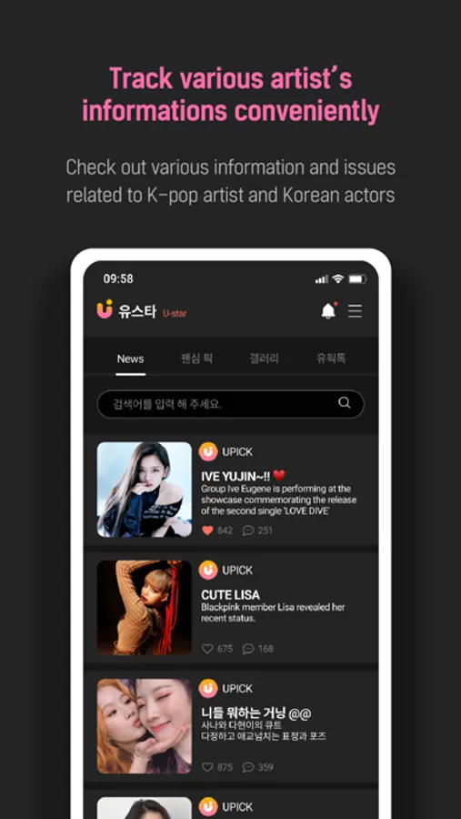 UPICK is a global fandom platform for fans worldwide that love K-pop artists and Korean actors.