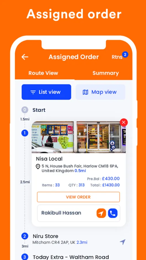 • Auto-routing with effective route listing based on delivery location.