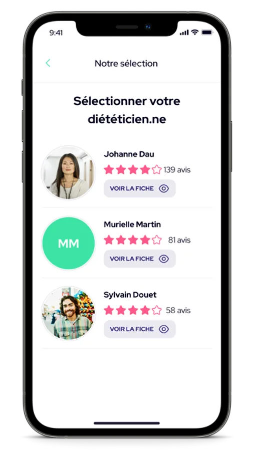 - Des diététicien(ne)s sélectionné(e)s et certifié(e)s