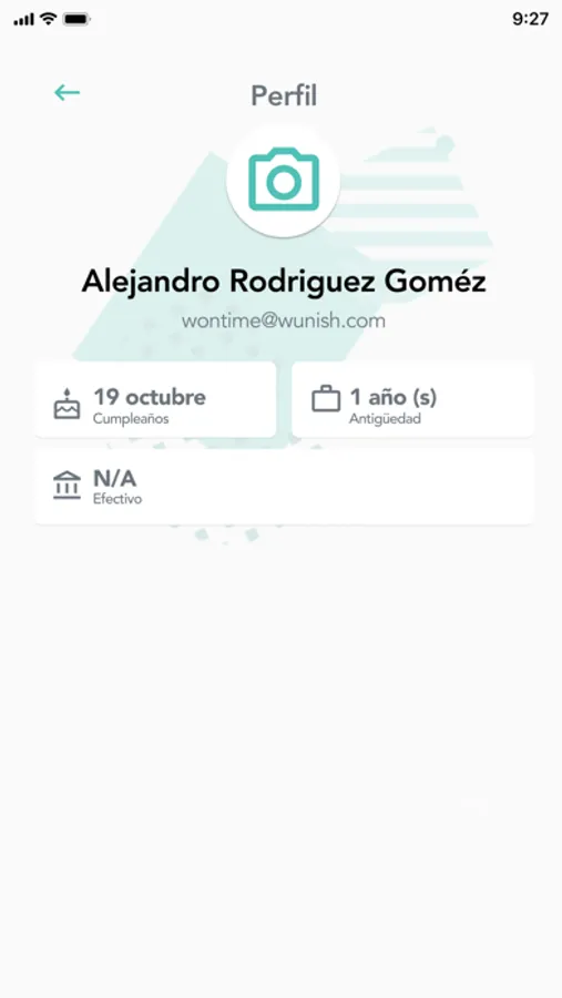 Wontime Mobile es la aplicación que detalla los datos necesarios de la persona que tiene actualmente relación laboral con RH Wunish.