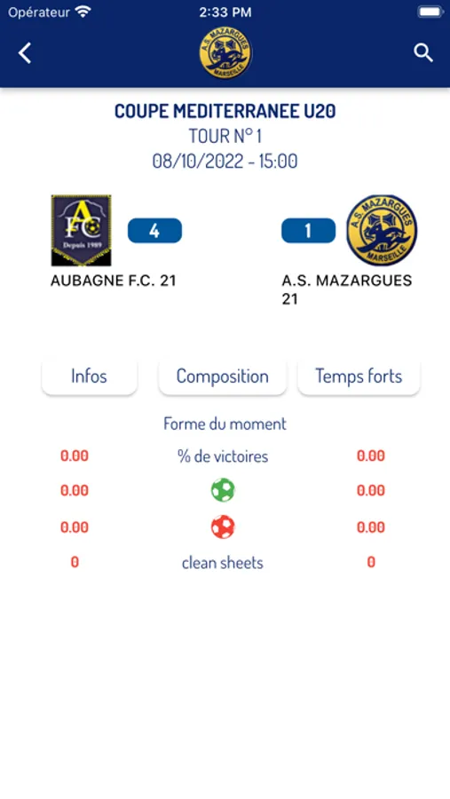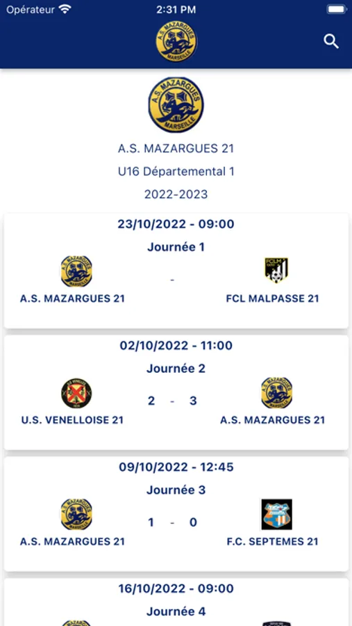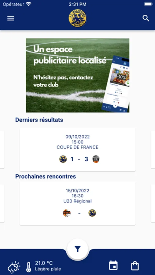 Actualité du club, équipes, effectifs, calendriers et résultats et suivi des rencontres en live via la notification des temps forts !
