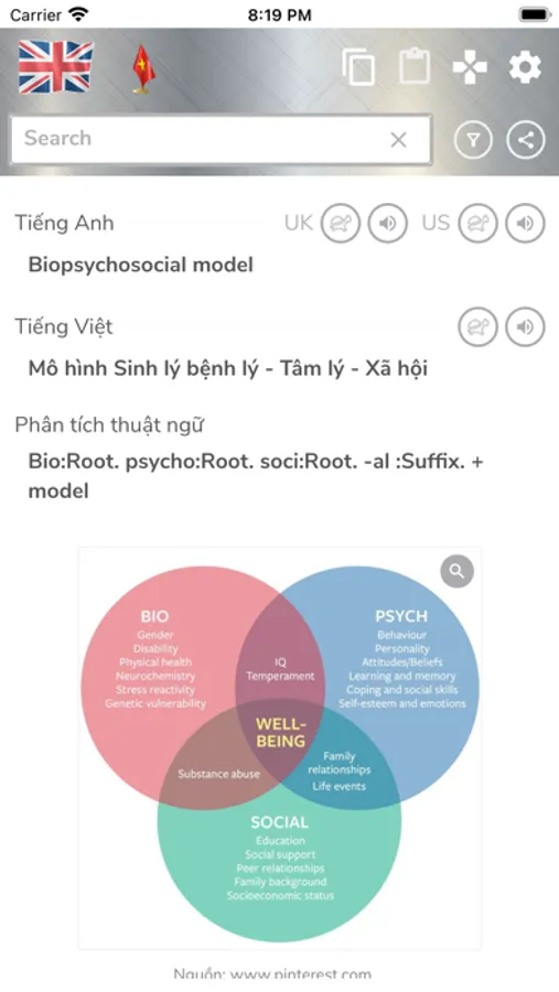 - Tra cứu gợi ý, song ngữ Anh - Việt và Việt – Anh.