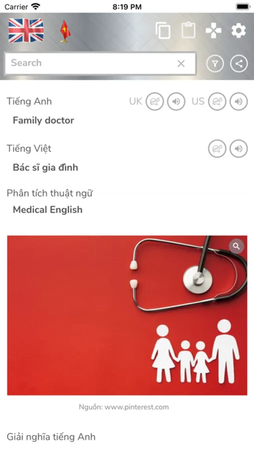 - Ứng dụng tra cứu thuật ngữ Chuyên khoa Bác sĩ Gia đình.