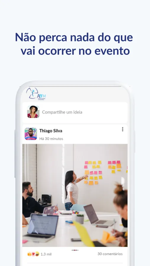 Com o aplicativo “ABFM”, você tem acesso a uma rede social exclusiva, pode fazer novos contatos, enviar perguntas aos palestrantes, trocar mensagens com outros participantes, enfim, interagir com a comunidade. Além disso, você pode consultar a programação, avaliar conteúdos, dar feedback e responder quizzes. Utilize o APP e aproveite ao máximo os recursos.