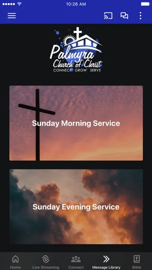 This app will help you stay connected with the day-to-day life at Palmyra Church of Christ. With this app you can: watch or listen to past messages; stay up to date with push notifications; share your favorite messages via Twitter, Facebook, or email; and download messages for offline listening.