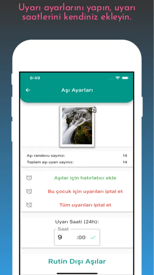 Çocuklarınızın aşılarını takip edin, uyarı ekleyin, büyümesini çizelge üzerinde takip edin ve ihtiyaç halinde yakınlarınız ve doktorunuzla paylaşın.