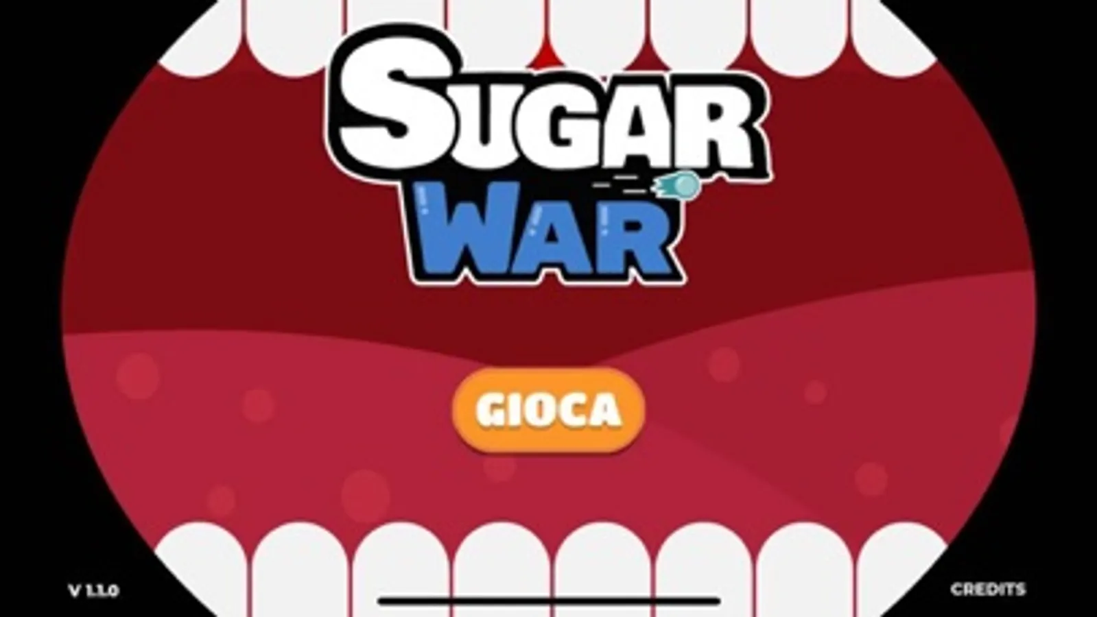 Sugar War è un semplice gioco d'avventura 2D che parla delle avventura di uno Spazzolino/a Junior, componente della squadra di eroi Sugar War, contro batteri, placca e zuccheri per proteggere la bocca e i denti dai loro acerrimi nemici