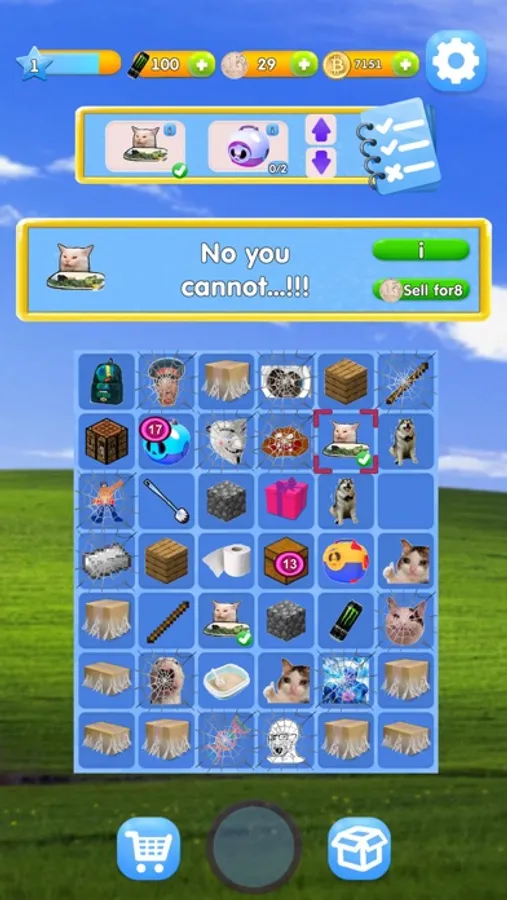 Merge-2 gameplay with a humorous twist featuring popular memes