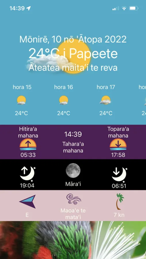 Ra'i offers astronomical information and weather forecasts, as seen by native Tahitians. From the name of winds to the name of the night to the forecast of the day, all the essentials are grouped in a beautiful interface that will make you feel the powerful understanding of natural phenomenons Polynesians have built over centuries crossing oceans and inhabiting hundreds of islands in the Pacific.