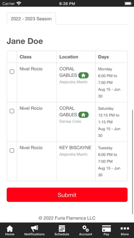 The Furia Flamenca app allows you to manage your account with ease, register for classes, parties, and special events. You'll also receive important notifications about class changes, closings, registration openings, special announcements, and upcoming events.