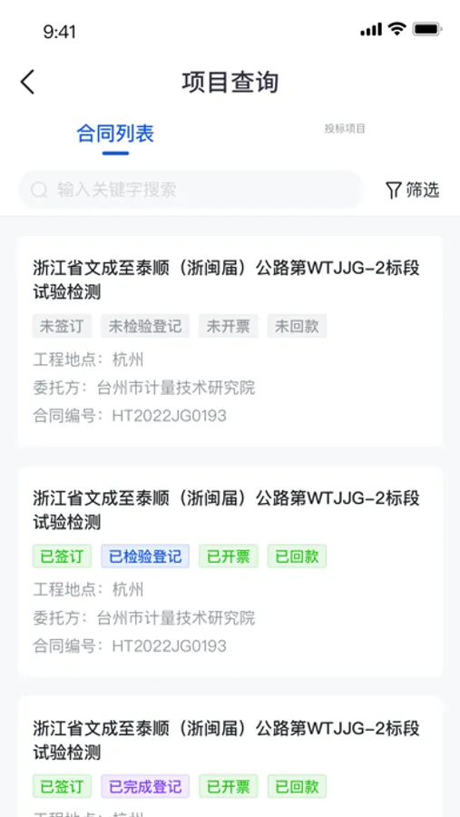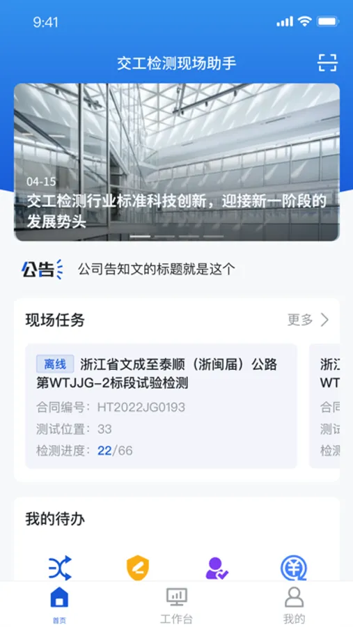 2、检测人员根据app的任务单到现场采集验收数据,提交后走审核流程;