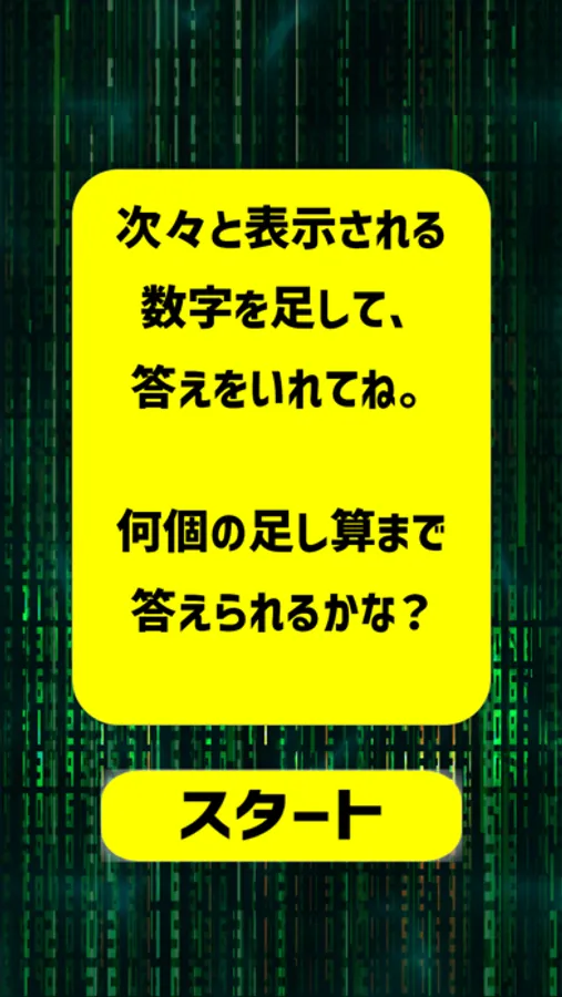 次々と表示される数字を足して答えを出していく暗算ゲーム!