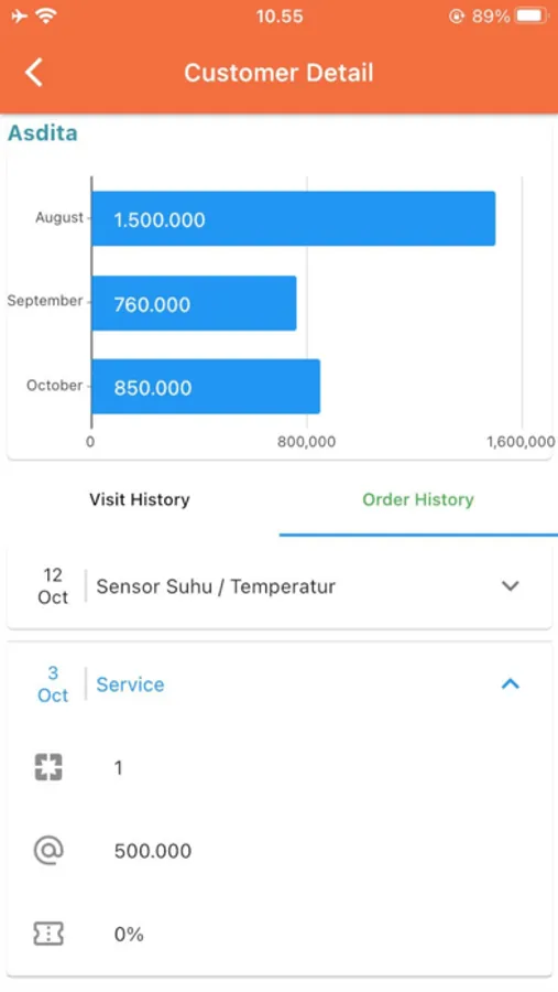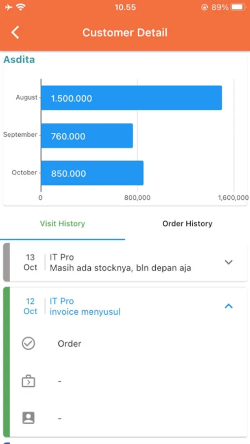 - Katalog product dengan foto, history kunjungan dan order setiap customer