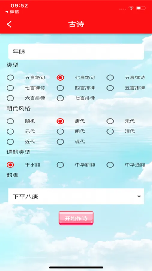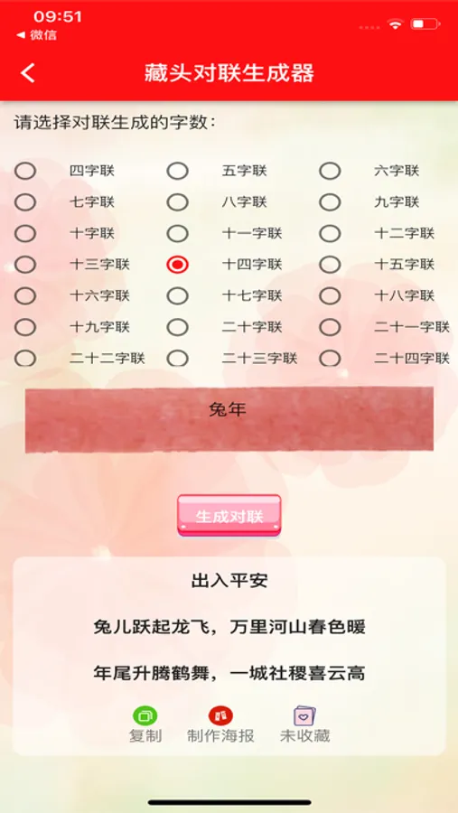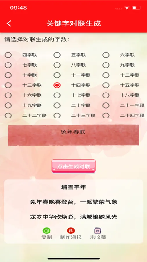 1:收集了上万副经典对联,可以筛选不同类型的对联。2:AI生成对联 3:AI生成藏头诗 4:AI生成古诗词 。 对联,诗词爱好者的最佳选择的软件哦