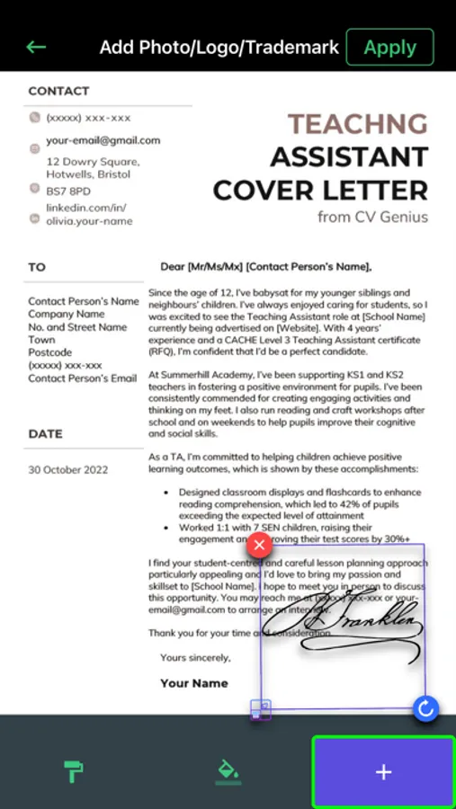 Indispensable for official and business documents, the edition function lets you take notes on the pages, E-sign and paraph any files from your mobile.