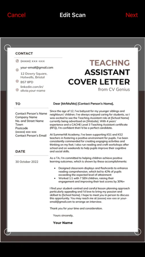 Scan is your indispensable tool to organize your business and home life from your device with simplicity and quality. Scan business contracts, receipts, book pages, notes, business cards, identity papers, notes and thousand of documents.
