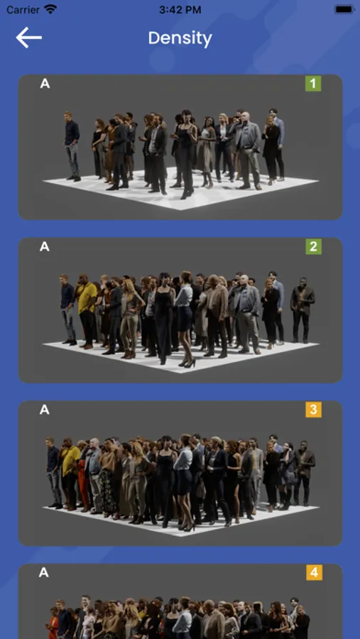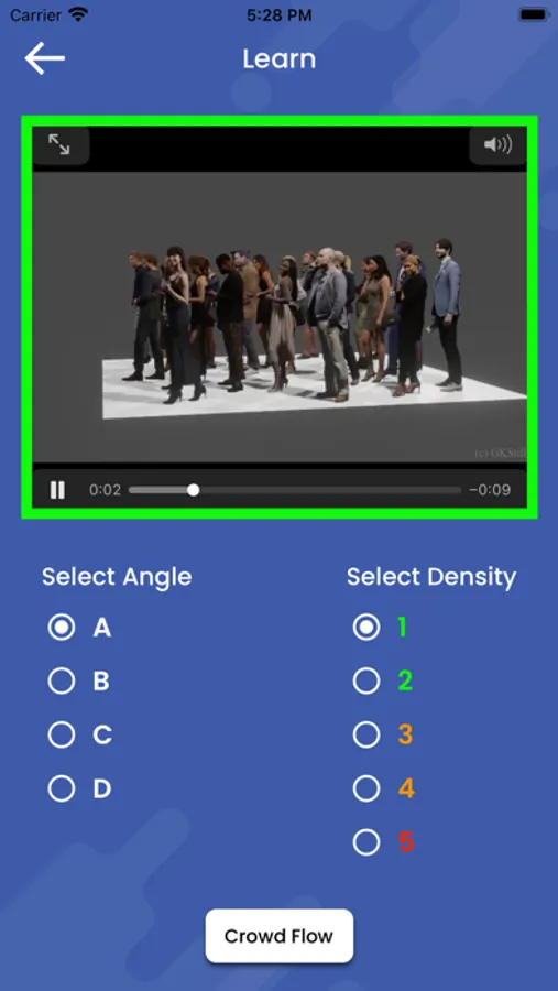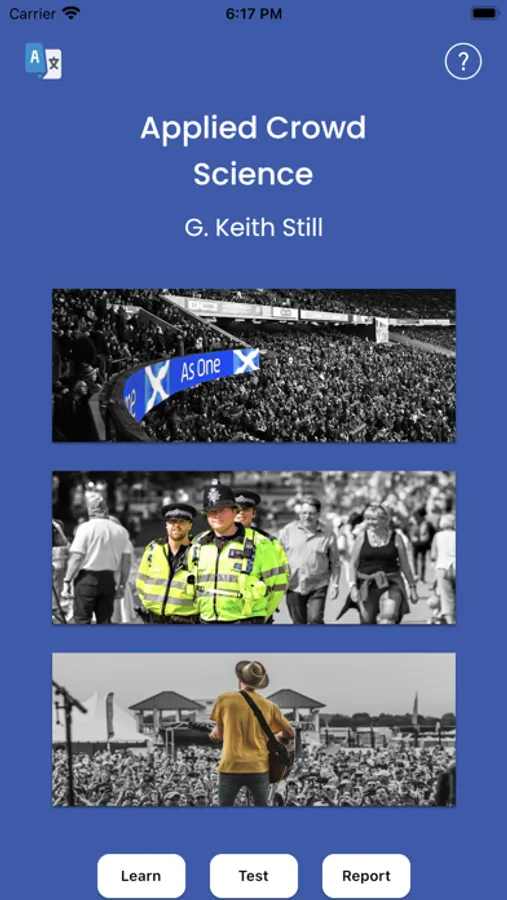 The app has three fundamental modes. The first is a learning mode, where the user can view both crowd density and crowd flow. The second mode is a test, where the user can assess their learning and keep a record of their progress. The third mode is reporting, where the user can record crowd risks and then report those to their supervisor – using the camera app.