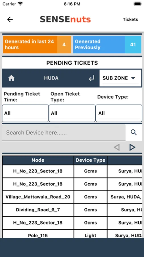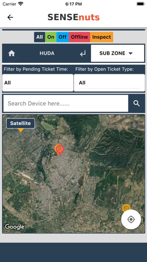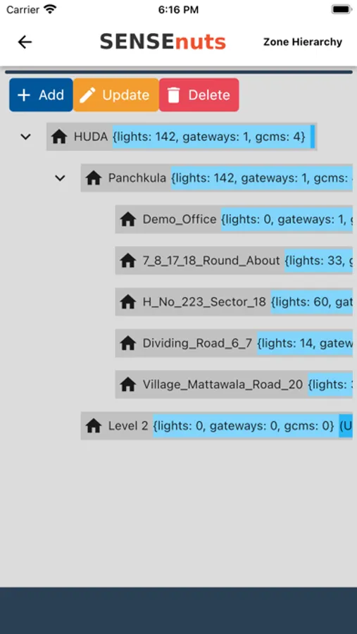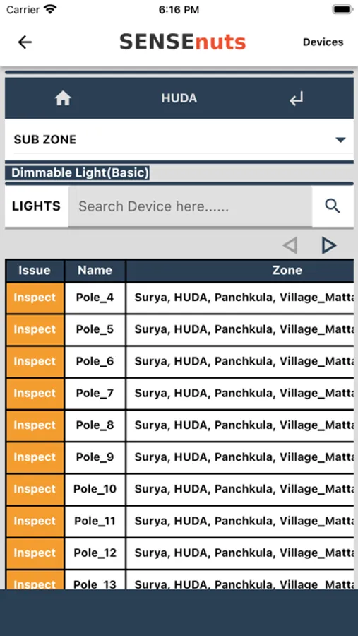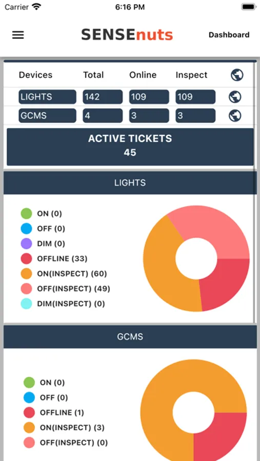 App to manage, control and analyze lights and group control feeder panels, deployed using SENSEnuts eI platform