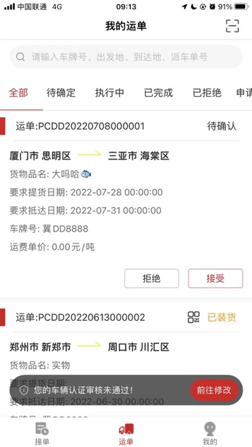 实名注册、实人认证——多资质审核运力,保证业务、交易真实性。