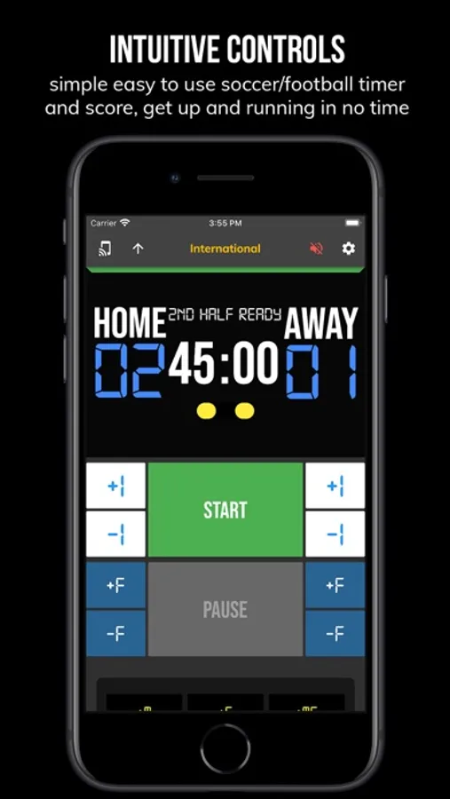 The BT Soccer/Football Controller is one of the best score keeping and timer tools specifically designed for soccer & football (International, Indoors, Youth Leagues, custom rules, etc.). You may use it as a stand alone tool for keeping score and time or, as well, it can be used as a remote controller for the supported BT Soccer/Football Scoreboard app. The interface is clean and intuitive, with clearly labeled buttons and direct touch interface. With proven success in other sports, we are happy to expand our technologies to soccer. The BT Soccer/Football Controller app is easy to learn and new users can be running the time and score in no time.