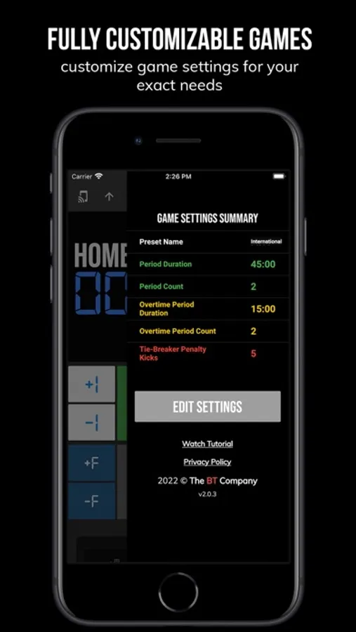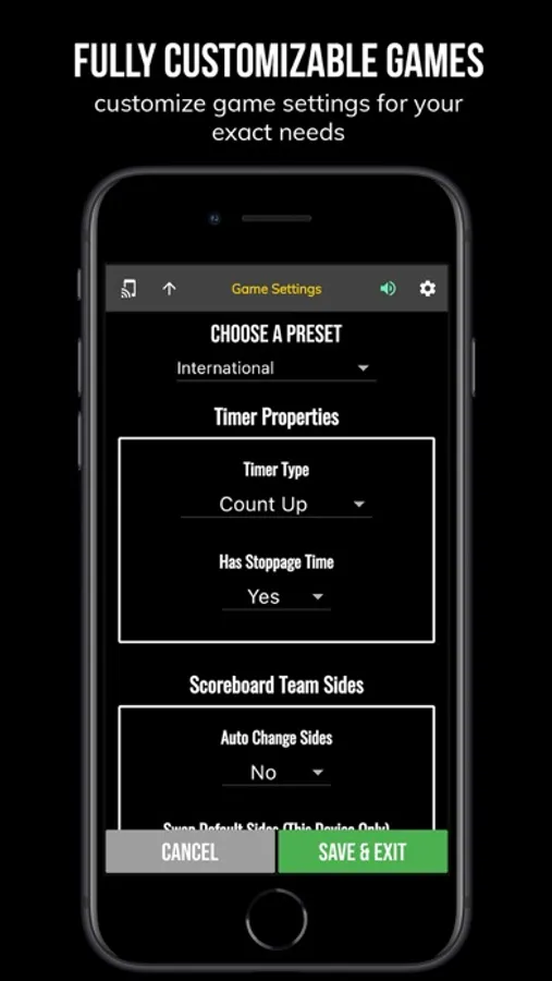 - Convenient Presets (FIFA, Futsal, Indoor w/ Quarters, College, Youth Leagues, and more...)