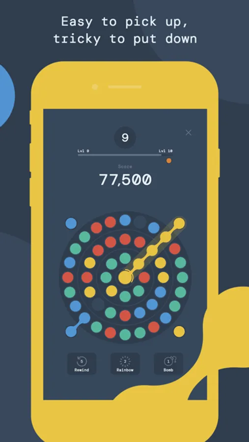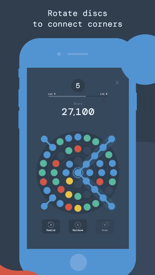 Keep the board moving as you rotate discs to chain colors, connect corners and rack up high scores. Keep a level head under pressure as you clear as many lines as possible.