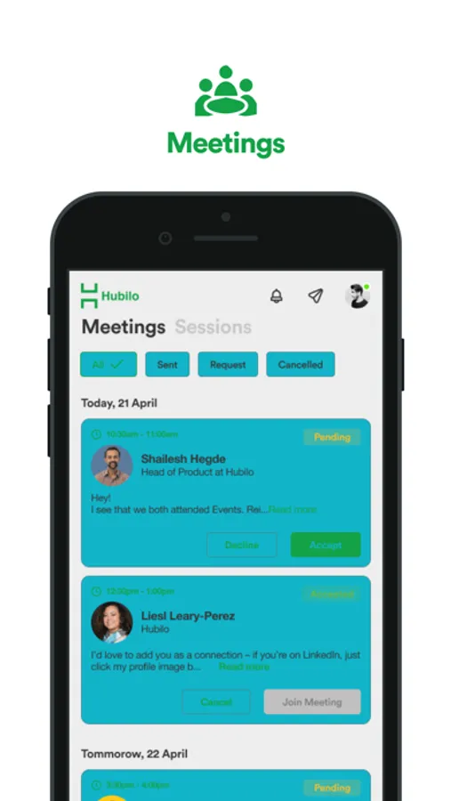 Set up meetings with potential attendees (investors, mentors, industry CxOs) by using the chat feature.
