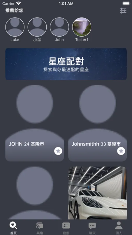 除了隨機推薦外,您也可以使用星座配對,興趣篩選,找到理想的人選