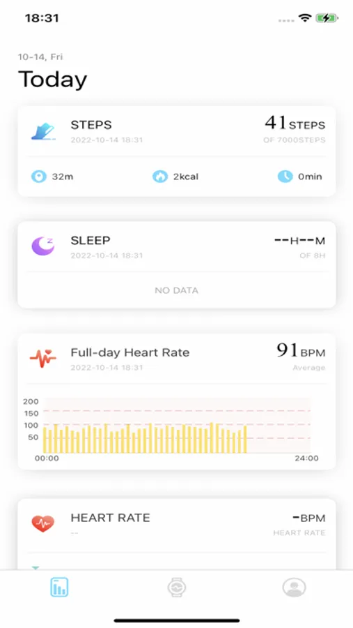 - Detailed graph of steps, sleep, heart rate for Day, week and month.