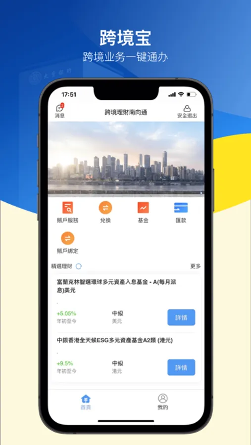 跨境汇款功能助您随时随地调拨两地资金。