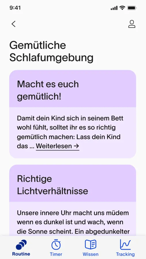 Vom Tagesrückblick über Zähneputzen bis hin zur Gutenachtgeschichte – Erlebe die Abendroutine mit deinem Kind und entwickle dadurch gemeinsam gesunde Schlafgewohnheiten. Lass dein Kind zur Ruhe kommen und sich mit zahlreichen Entspannungsritualen auf die Schlafenszeit einstimmen.