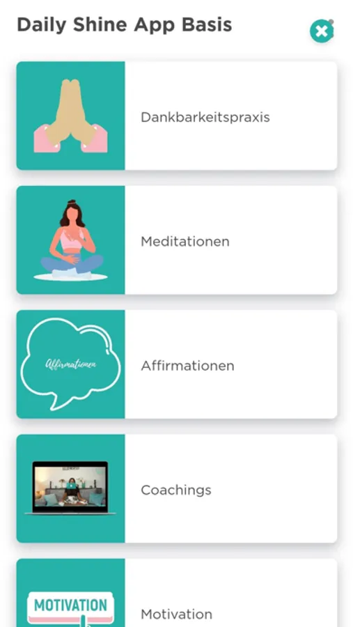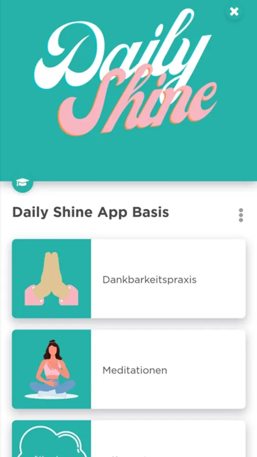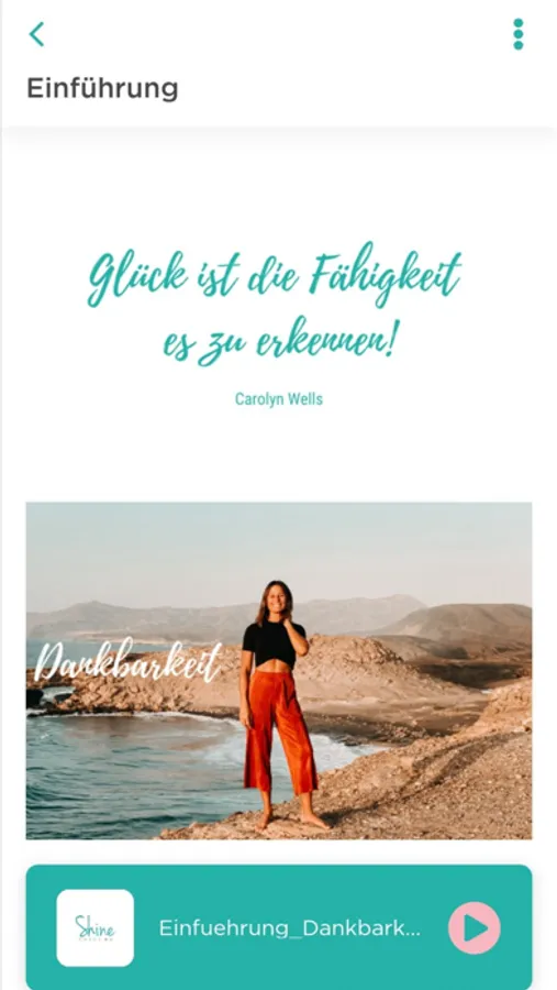 Zusätzlich zur täglichen Dankbarkeitspraxis findest du in der App jede Menge Affirmationen, Meditationen, Power Talks, Energy Walks, Achtsamkeitsübungen, Atemübungen und Seminare zum Thema emotionales Essen und Binge Eating und vieles mehr.