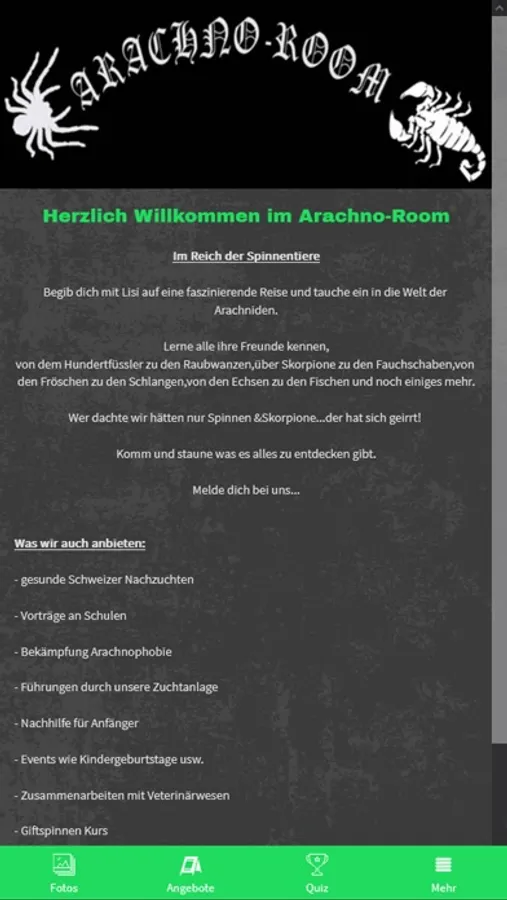 Mit dem Arachno-Room erfahren, welche Events geplant sind oder welche aktuelle Tiere zu besichtigen sind.